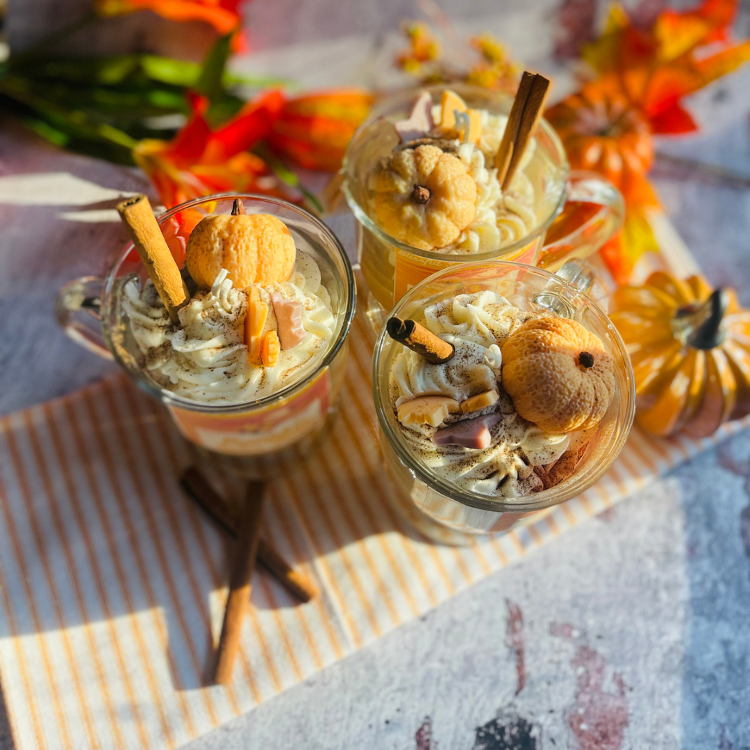 Unleash the cozy ambiance of autumn with our handcrafted Pumpkin Spice Latte candle. Experience the comforting blend of pumpkin, cinnamon, and spices, as the flickering flame dances, filling your space with the irresistible aroma of your favorite fall beverage. Create an inviting atmosphere and let the warm glow of our candle transport you to a world of pumpkin-spiced bliss.