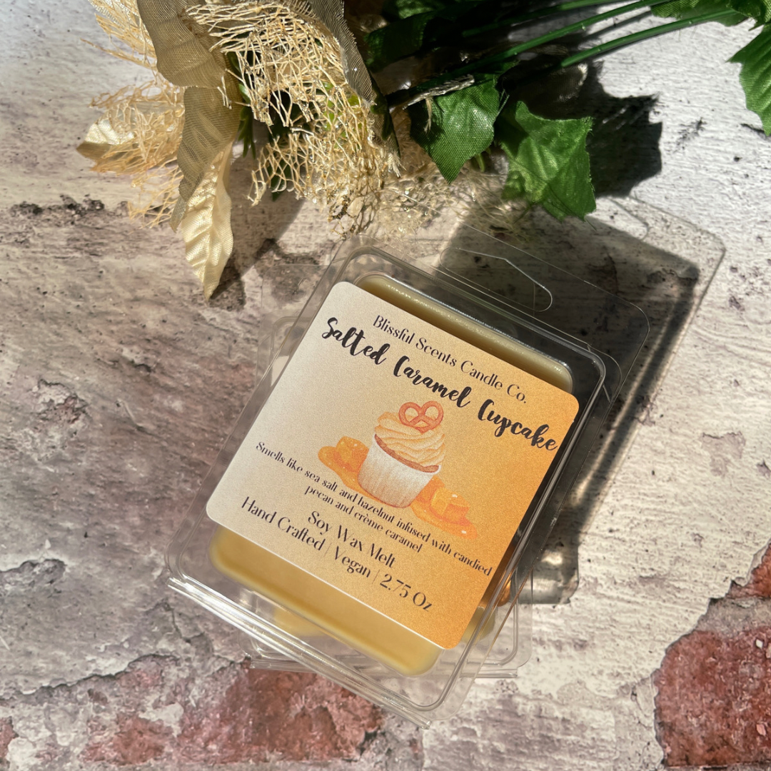 Discover the decadence of our Salted Caramel Cupcake wax melts. This wax melt is made with natural soy wax, triple scented with delicious notes of salted caramel, and infused with fine mica powder for a glittering finish. Enjoy the sumptuous scent in any room.